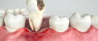 After depulpation, the hole is filled. The main disadvantage of this procedure is the exposed tooth root, which can cause complications in the future.