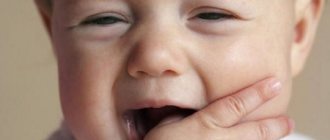 The first sign of the onset of teething is redness and swelling of the gums, which, after 7-10 days, again acquire a normal appearance, but with only one change. A thin white stripe appears at the top of the gum - an emerging tooth. Other frequent, but not constant, symptoms of teething are: an increase in body temperature to approximately 37.5 -38.0 degrees, loose stools or a decrease in the baby’s appetite. The most accurate and constant sign of this process is considered to be increased salivation and itching of the gums. The child’s behavior at this time is reminiscent of the reactions of a pet hamster or other rodent - he puts everything into his mouth and chews everything: toys, wooden bars of the crib, pacifiers, even his own fingers. When teething, a sour (metallic) odor may occur from the baby's mouth, as antibacterial substances are produced in the saliva at this time. They change the smell of saliva.