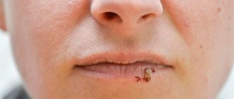 - With the development of a herpetic infection, bumps often form on the lips with characteristic signs