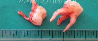 - the number of roots is greater than that of other molars - up to 5 pieces. In this regard, problems often arise when removing a wisdom tooth;