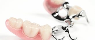 - Съемные протезы на кламмерах имеют специальные крючки из металлического сплава, которые закрепляются на опорных зубах.