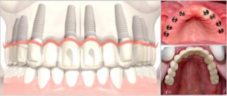 Сверху на импланты ставятся коронки или мосты, а также мостовидные с небольшими включениями искусственной десны (для маскировки неровного контура естественной десны).