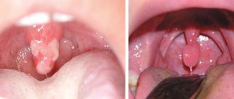 - язычные миндалины – увеличенные лимфатические узлы в области корня органа,
